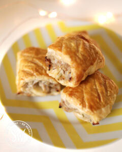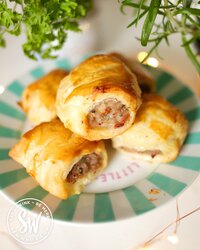 This is like a mini roast pork and apple sauce dinner in a puff pastry case. It's truly delicious and way too easy to eat. It is great for picnics or party food. They can be made in advance and frozen or stored in the fridge. They can be served hot or called and easy sausage rolls bites to make when you really fancy a bite-size treat.